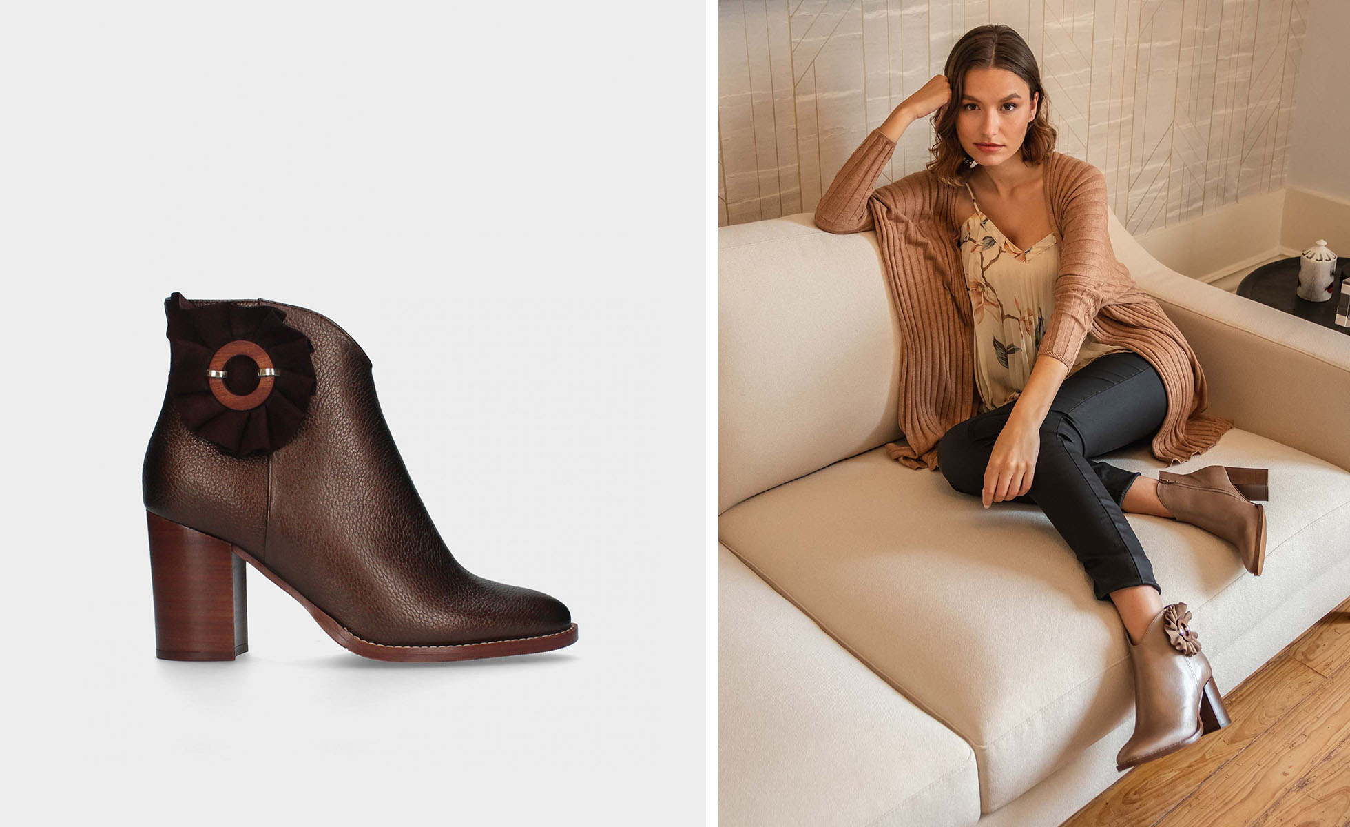 Dans toutes nos collections, vous trouverez des bottines à talons plats avec des détails qui assurent le glamour et une touche différenciatrice à votre tenue.